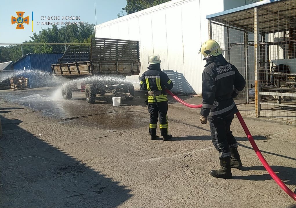В ході тренування перевірено готовність протипожежної служби підприємства шляхом проведення ліквідації умовної пожежі на території підприємства з залученням підрозділу 28-ї Державної пожежно-рятувальної частини м. Яготин та членами добровільної пожежної дружини із використання первинних засобів пожежогасіння.