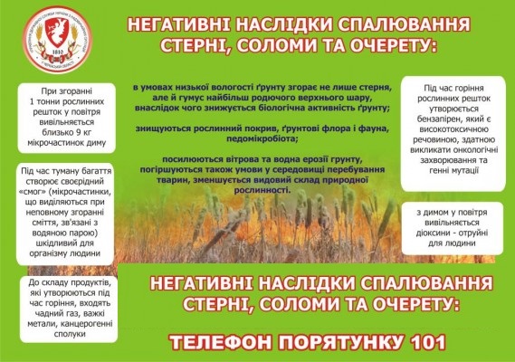 Негативні наслідки спалювання стерні, соломи та очерету!